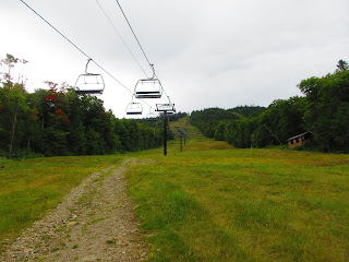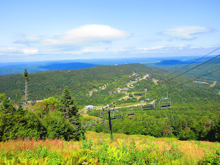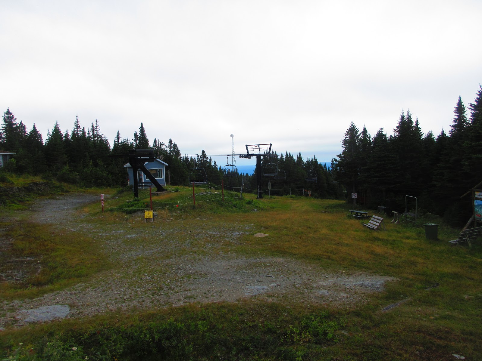 Je me stationne au centre de ski et prends le chemin de gravier jusqu’au deux tiers de la montée pour ensuite poursuivre sous le télésiège jusqu’au sommet.