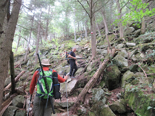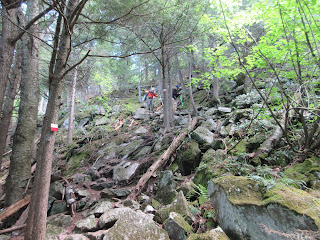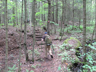 At one point we encounter a rather steep but beautiful section and great precaution must be taken,as we get closer to the summit we start feeling the wind blowing thru the trees and this is very welcome as it is a humid day and the mosquitos are out in full force.